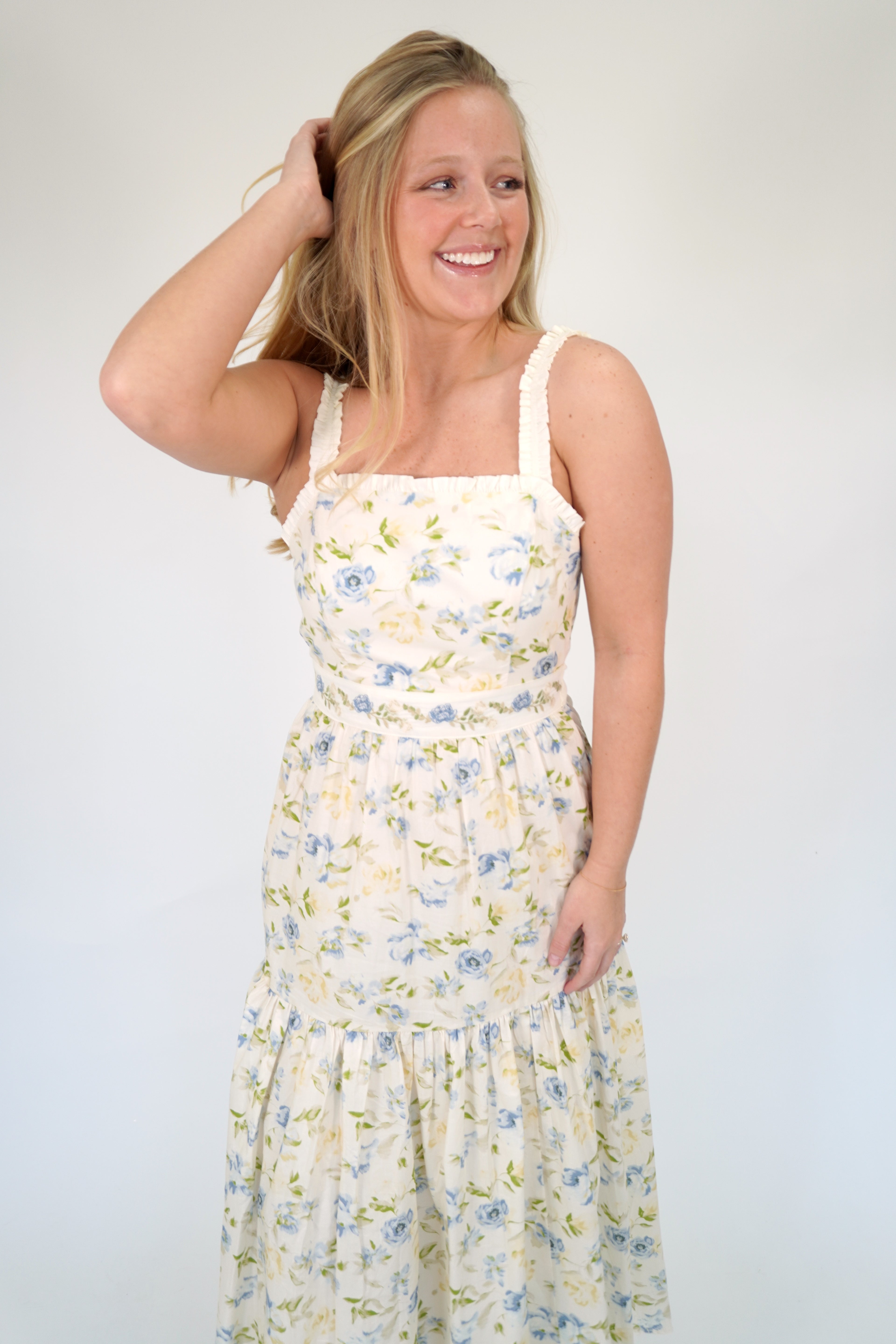 Bluebell Floral Tiered Midi Dr