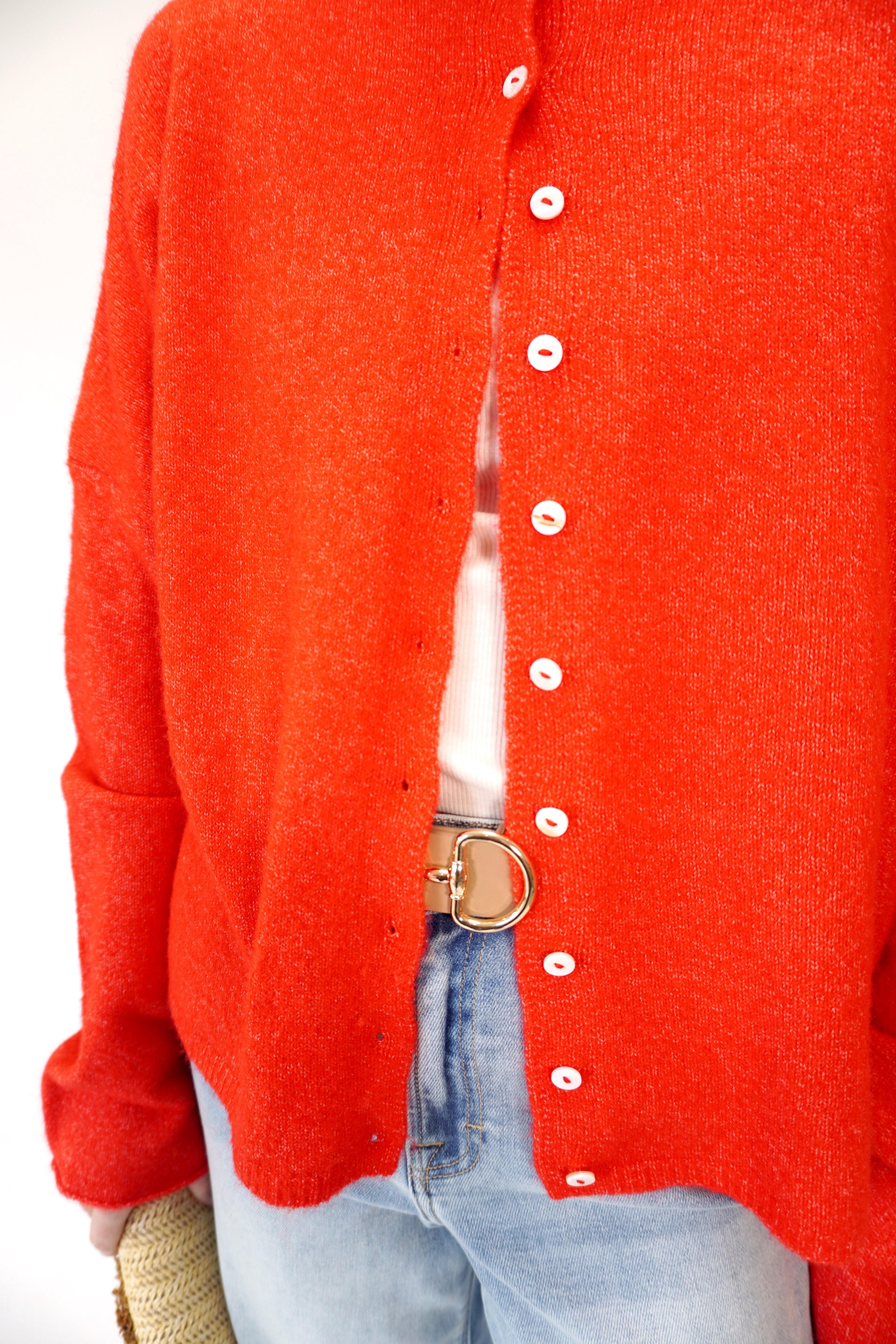 Classic with a bold pop of color, The Ruby Button-Front Cardigan Sweater is the perfect blend of cozy and polished. Crafted from a soft, lightweight knit, this cardigan offers an easy, flattering fit that’s comfortable enough for everyday wear while still looking put-together. The rich red hue adds instant warmth and personality to any outfit, making it a standout staple for the season.