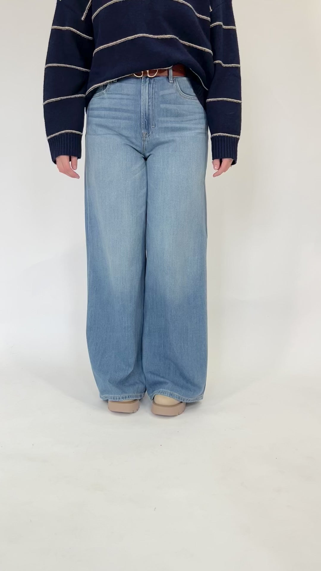 The Parker Hidden High-Rise Wide Leg Jeans deliver timeless style with a relaxed, on-trend silhouette. Designed by Hidden Jeans, this pair features a flattering high-rise waist and a clean wide-leg cut that elongates the legs while offering all-day comfort. The classic medium-wash denim makes them easy to style year-round, from casual days to dressed-up nights.